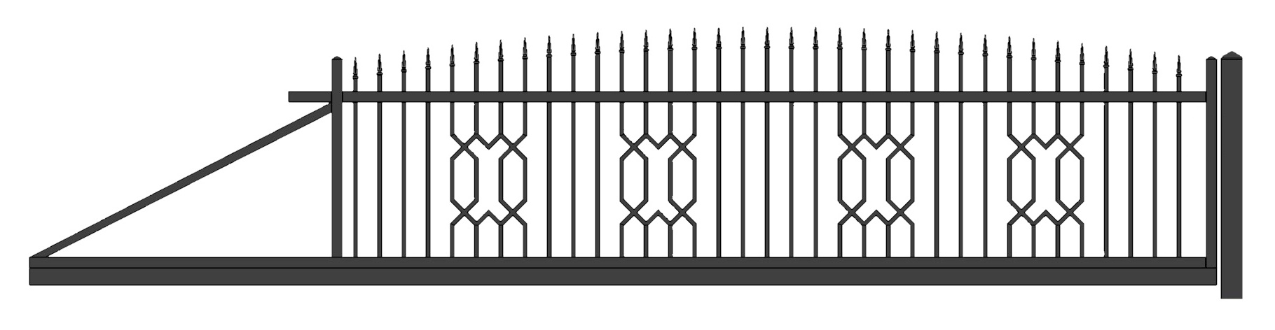 Die solide Ausführung mit zwei geometrischen Formen stellt eine perfekte Lösung für Häuser in klassischer oder moderner Architektur dar. Das Modell Saphir kann gerade oder mit Bogen geliefert werden. Außerdem können verschiedene Zierspitzen gewählt werden.