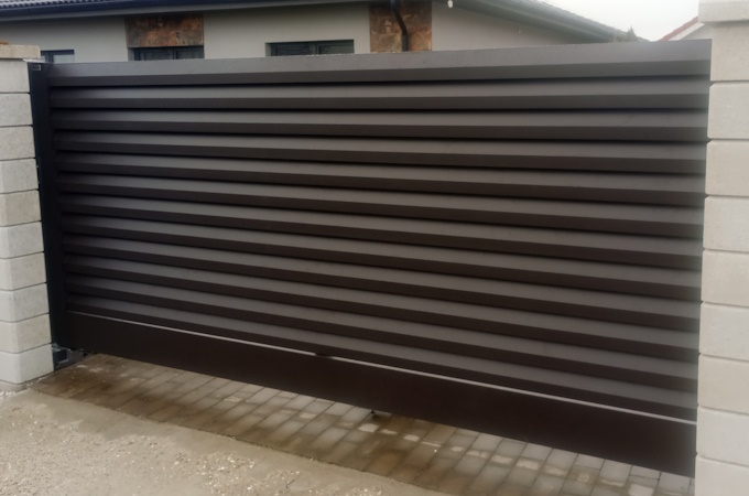 Horizontale Torsysteme, Sichtschutztore, Torsysteme aus Aluminium Alu Schiebetor „TRAVERTIN AL 200/P-20“