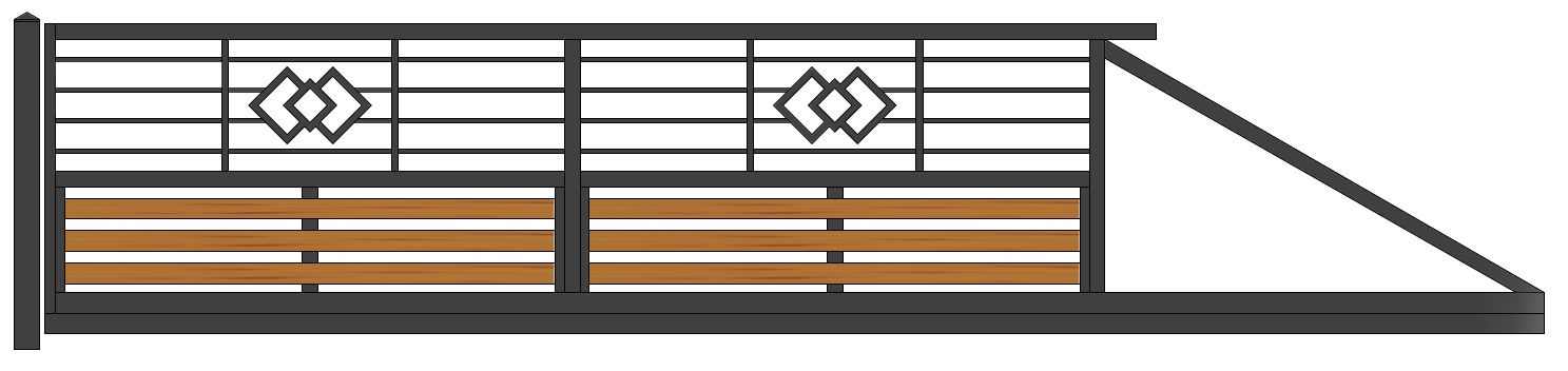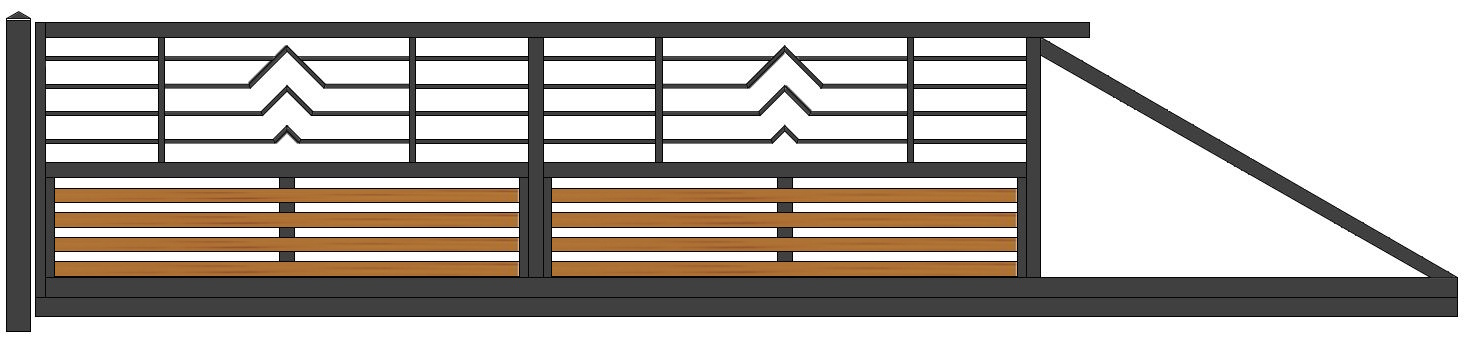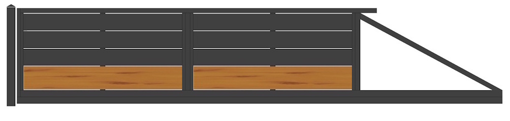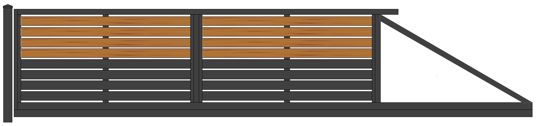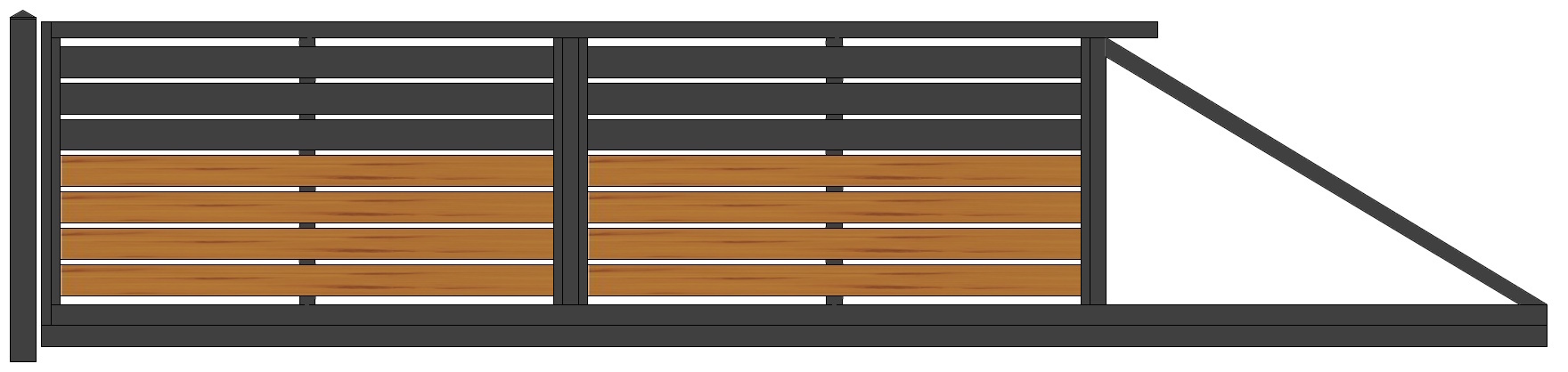 Wir können Ihnen verschiedene Modelle auch mit horizontaler oder vertikaler Holzoptik liefern. Die Modelle mit Holzimitation stellen eine Alternative zu Einfahrtstoren (Doppelflügeltore und freitragende Schiebetore) und Gartentoren ohne Füllung – zum Selbstbeplanken mit Holz oder Holzleisten – dar. Durch die in Holzoptik pulverbeschichteten Stahlhohlprofile entfällt das regelmäßige Streichen der Holzbeplankung.