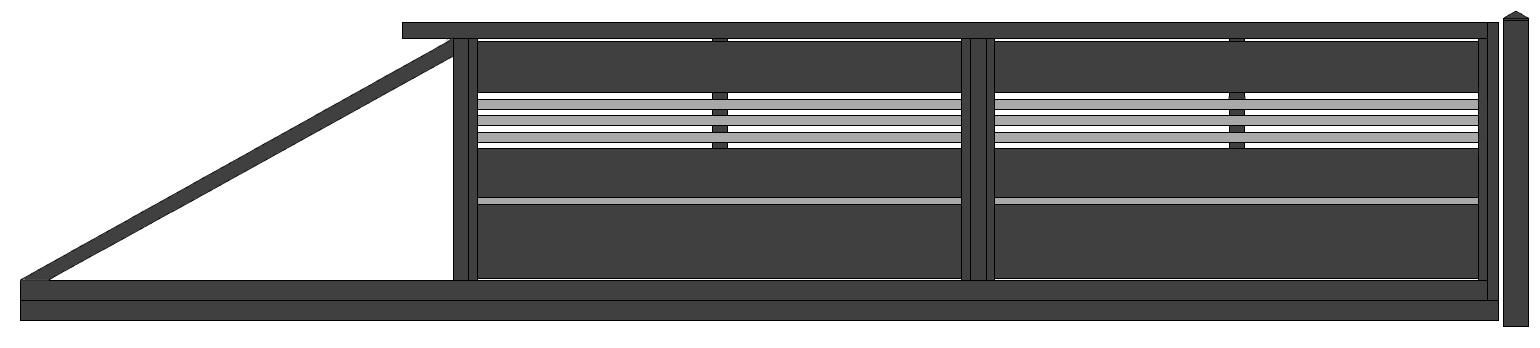 Es ist eine einzigartige Kombination der Modelle Travertin MX und Travertin PLUS. Die schmalen Profile können eine vom übrigen System abweichende Farbe haben (z. B: RAL 9006 Weißaluminium). Der untere Teil ist somit vollständig blickdicht und eignet sich damit gut als Sichtschutz. Das neue Muster sieht toll aus und bietet ein hohes Maß an Sicherheit und Privatsphäre.