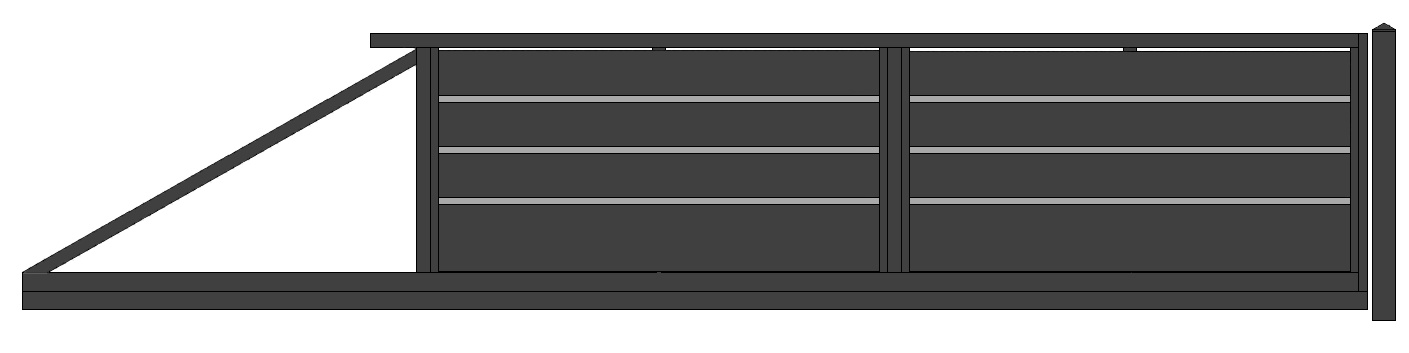 Die waagerechten Querstreben haben eine Höhe von 20 cm. Der Zwischenraum zwischen den einzelnen Querstreben wird mit 3 cm C-Profilen ausgefüllt. Die schmalen Alu-Profile können gegen Aufpreis auch in einem anderen RAL-Farbton ausgeführt werden.